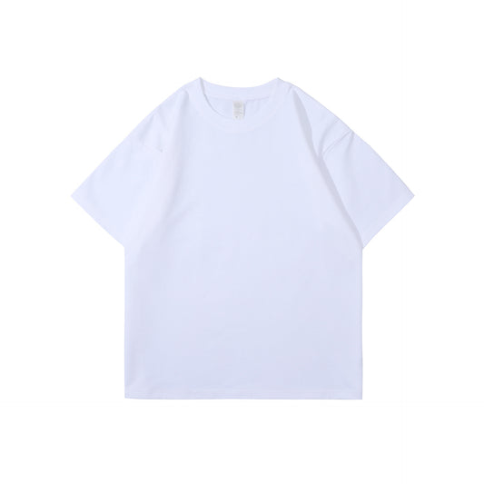 VALUABLETHING Pure cotton thickened short-sleeved men's and women's solid color thickened dropped shoulder loose round neck T-shirt